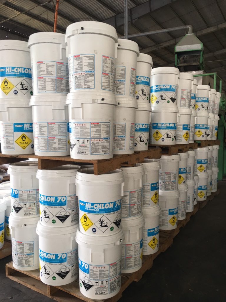 Chlorine (canxi hypochlorite) TCCA (axit trichloroisocyanuric) Công thức hóa học Ca(ClO)2 C3Cl3N3O3 Trạng thái vật lý Dạng bột, hạt hoặc viên nén Dạng bột, hạt hoặc viên nén Hàm lượng Clo 50%-75% 90% Độ pH pH 11,5% (5% aq. Sol) => tăng pH,độ kiềm pH 3% (5% aq. Sol) => giảm pH, độ kiềm Hiệu …